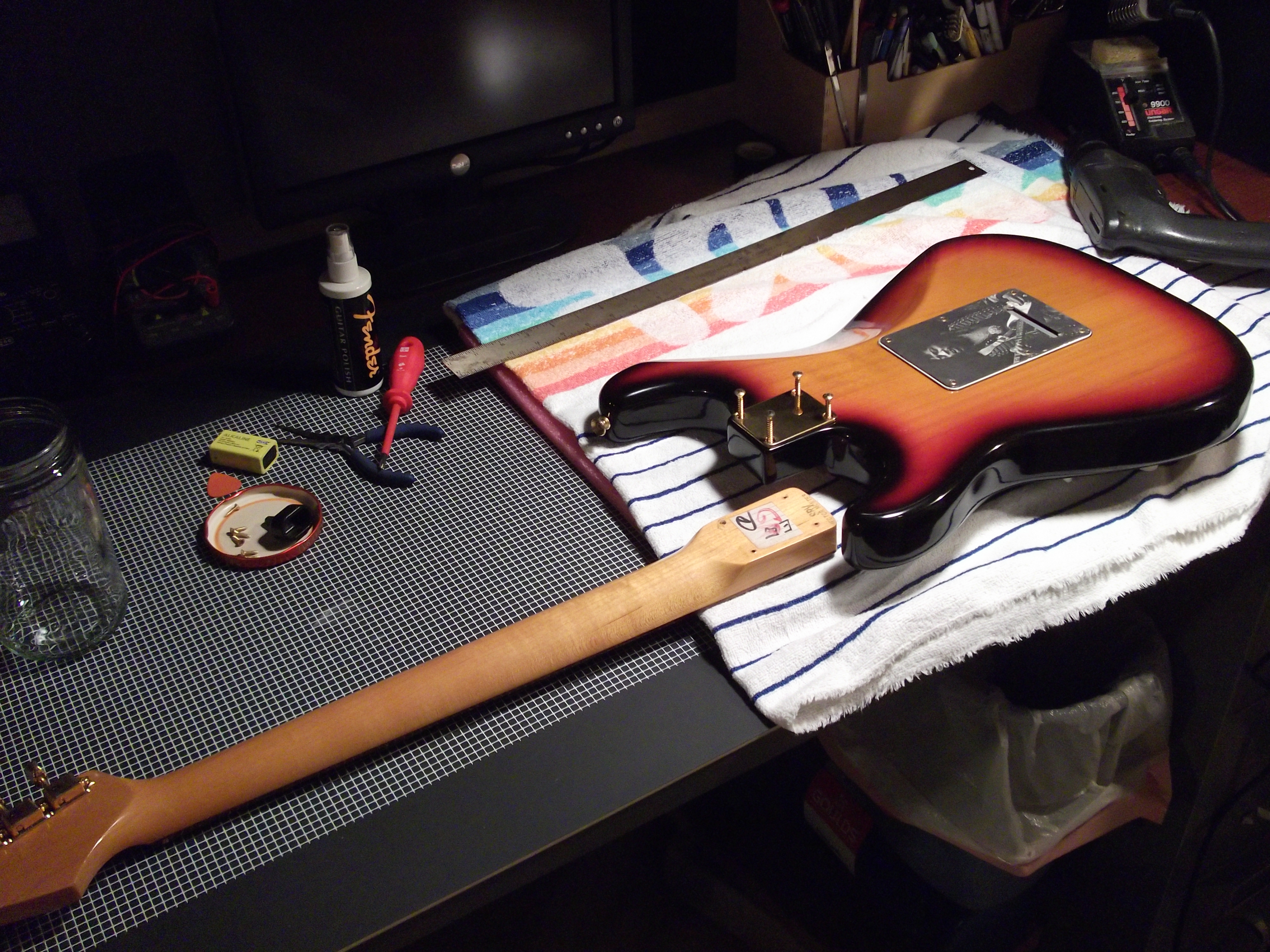 Sometimes a guitar just needs to be blown apart, gone thru end-to-end, everything cleaned and lubed and tightened, and anything replaced that’s not up to snuff. Then you do a complete setup from scratch knowing that there are no hidden demons. Such was the case with this SRV strat.. Also of note here is the new second bench area set up for RF and other non-tube work.