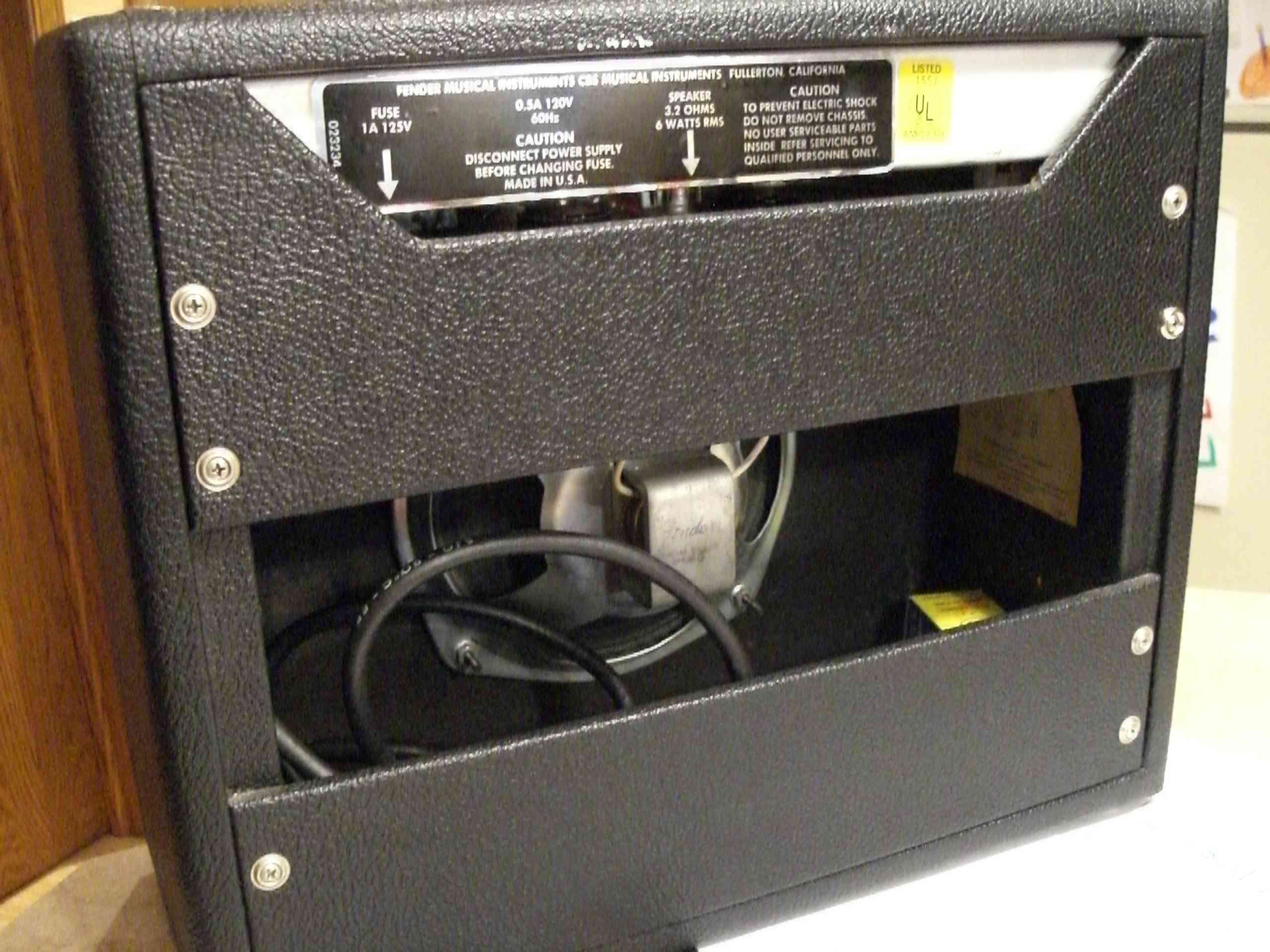 I know that a lot of people are pretty vehement about using original-type carbon composition resistors in older amps, but I don’t do that unless asked to. Yes, they look cool and old-school, and everyone likes to look into a beautiful old Fender chassis that looks untouched since new, but carbon comps almost always drift high with age, and are an inferior technology. Leo used what was on the market and reasonably priced. I don’t think physics supports the idea (or Leo would have ) that your ears can actually HEAR the way a resistors turns electrons to heat, or that they will change materially the way a tube clips or amplifies- but hey, lotsa folks believe in angels, too. I just prefer to put quality parts in that can’t burst into flames when they fail -and leave all the Mojo Magic stuff to the players who still think they can buy their secret way to tone heaven rather than working for it. Having done that, all that was left then was to order a new tube. Once that was installed, checked for idle current and everything play-tested for an hour or so, she was ready to go back home and rock and roll some more – still the Champ